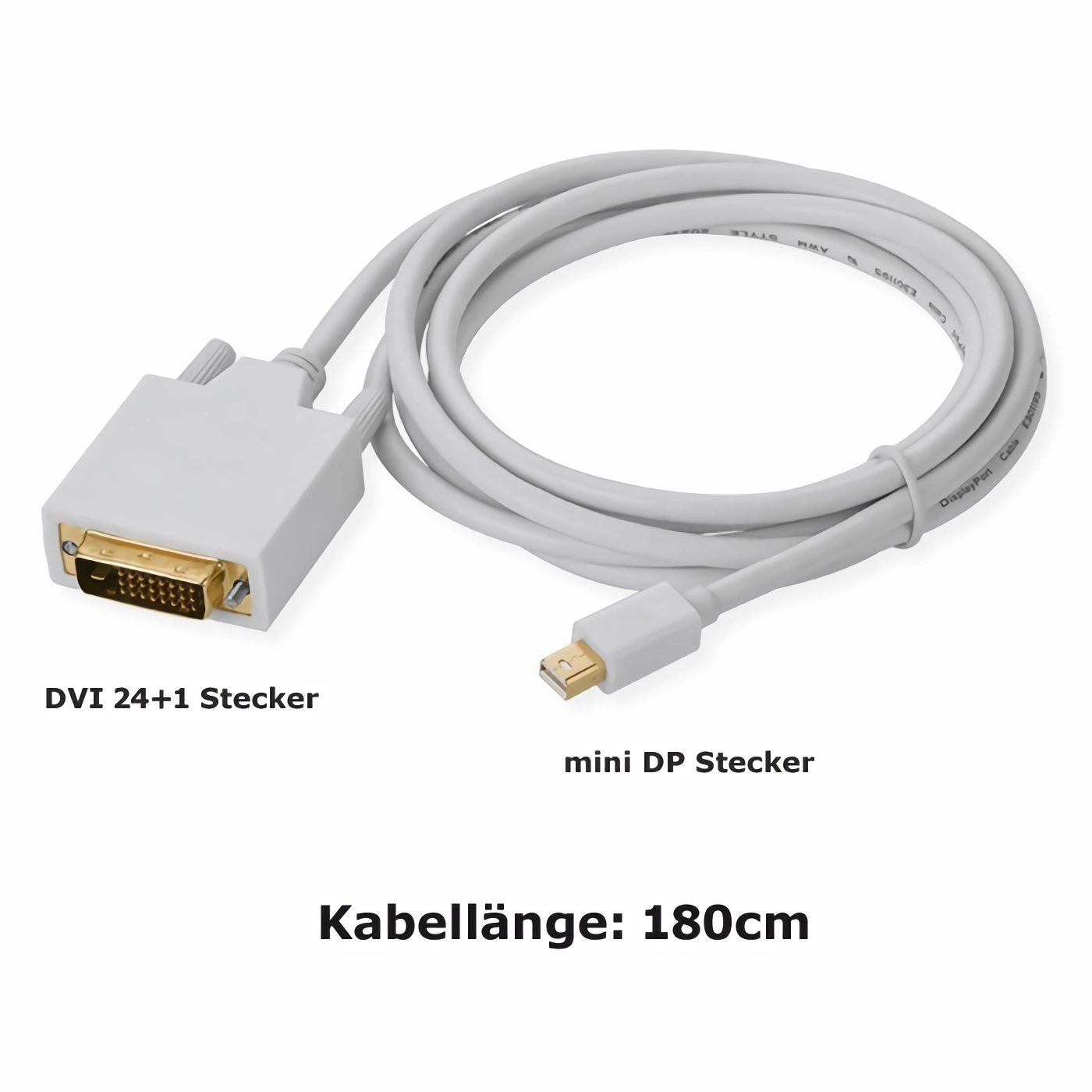 1x 180cm Adapterkabel Mini Displayport Stecker auf DVI 24+1 Stecker |