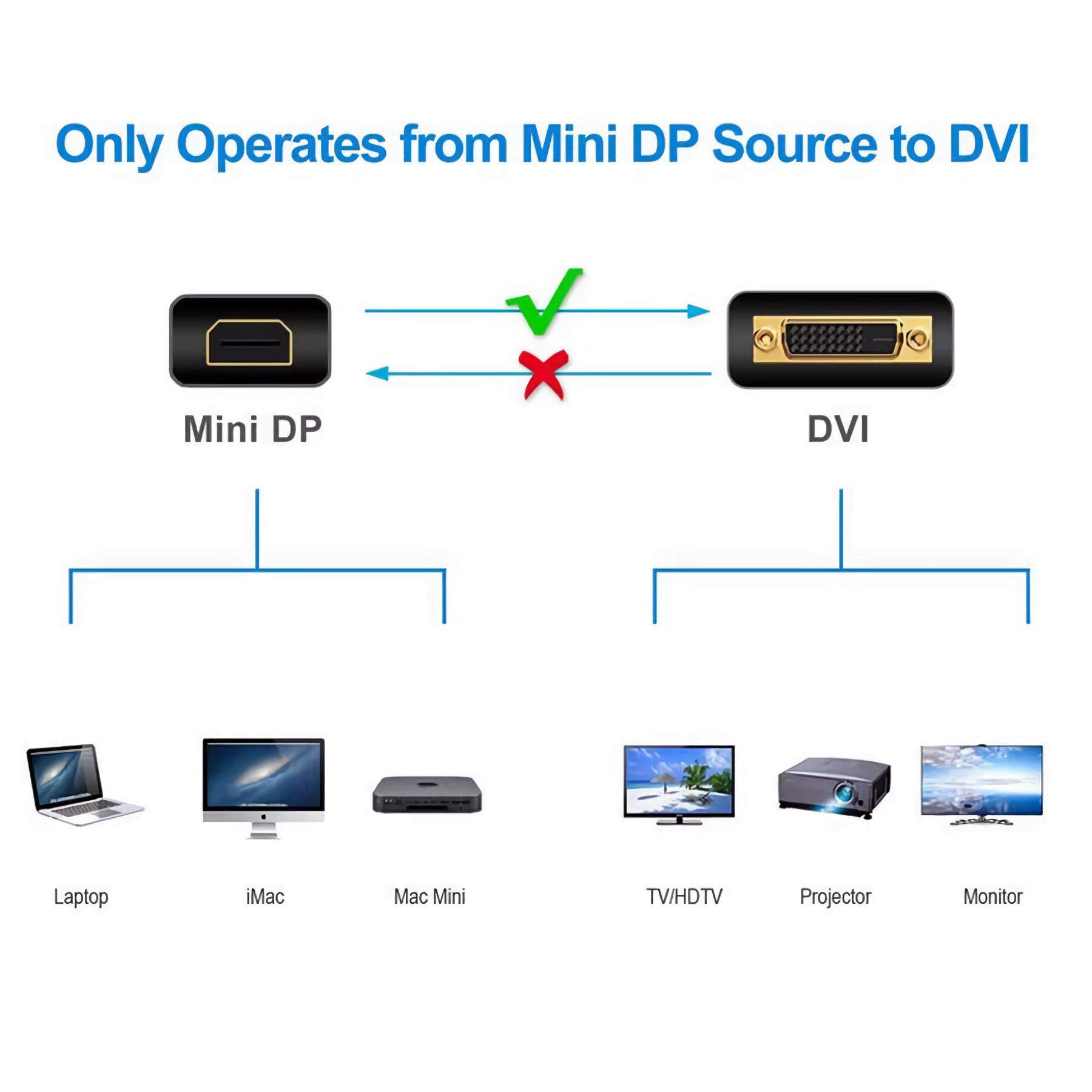 - Mini DisplayPort (20 Pins) auf DVI-D (Dual Link) 24+1