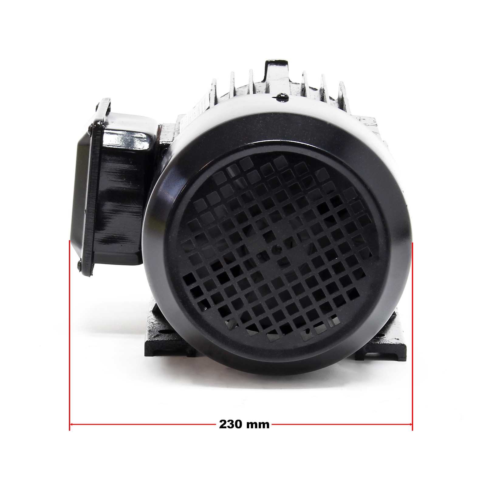 | Abmessungen | Wellenlänge: 50 mm Durchmesser Welle: 24 mm Lochabstand: 140 x 125 mm Motorgröße: 345 x 235 x 165 mm Kabeldurchführung: ø 16,5 mm Kabelschuhe: ø 4 mm |