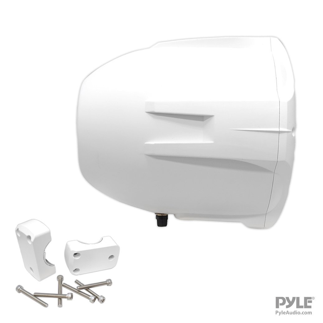 These Pyle Hydra wakeboard speakers are constructed with marine applications in mind � they�re water resistant and would work great on the dock or at sea. These 200-watt speakers are equipped with a 6.5� poly mica woofer cone for a booming low end and 1� polymer dome tweeter for sweet highs for a frequency response of 70 Hz to 20 kHz. Butyl rubber surround and heavy duty plastic cabinet construction extends the life of your product, and gold plated plug terminals keep your sound distortion-free. Mounting bracket included.