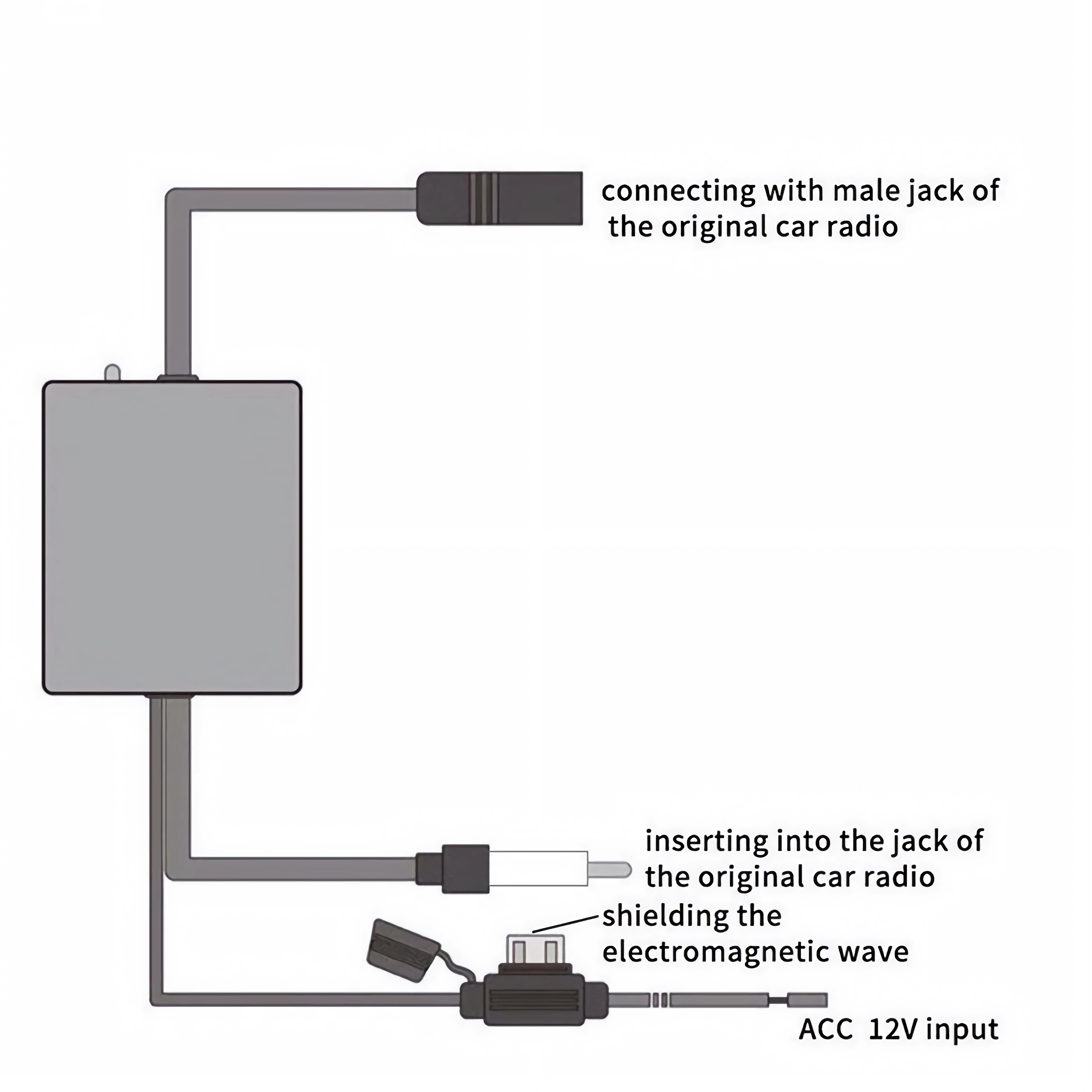 - Benötigt eine 12V Stromversorgung (rote Leitung), z. B. über ANT+ (blaue Leitung am Radio)