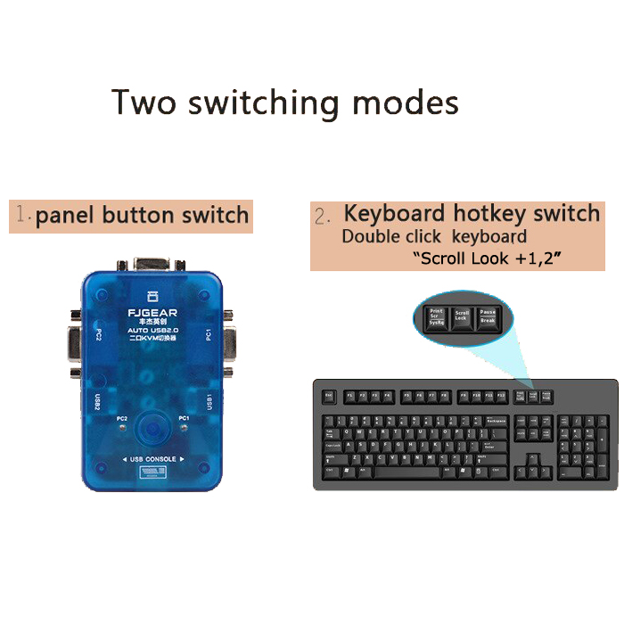 Schnelles Umschalten per Knopfdruck oder per Tastatur-Hotkey. Einfach zu installieren und zu betreiben. Unterstützt Hot-einstecken, Plug and Play.