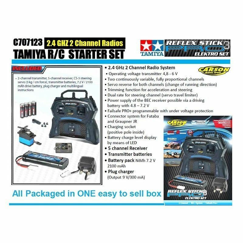 1/10 TAMIYA RADIO CONTROL ASSEMBLY KIT - 58336Package Deal Inc Twin Stick Controller, ESC, Servo, Battery and Charger. HORNET 2004Ready to assemble 1:10 Scale Radio Control kit 2 Wheel drive off road buggy Independent Coil spring suspension featuring rear oil filled dampers Tough Polycarbonate impact resistant body shell Designed for off road runningThe revolutionary 1984 2WD off-road buggy is back and more fun than ever before!The Hornet stands as one of Tamiya's most popular R/C cars ever released,helping launch a 2WD R/C buggy boom worldwide. Featuring excellent performance on both dirt and on-road tracks, this awesome buggy can take on any type of terrain. Just like the original, this re-release features an easy to assemble chassis and drivetrain consisting of a durable but lightweight ABS resin bathtub frame, diff gear loaded sealed gearbox, oil filled rear dampers, powerful RS 540 motor and high performance suspension system.The Hornet is perfect for those that used to have one, those that have always wanted one, and for those that want a revolutionary buggy that has earned its place in R/C history.Overall length: 400mm - Overall width: 230mm - Overall height: 150mm - Weight: 874g Solid bathtub frame with side bumpers High performance Type 540 motor Independent swing axle front suspension with friction dampers Rolling rigid axle rear suspension with oil filled dampers Sealed rear gearbox to protect diff gear during off-road running Original 3-piece assembly wheels compatible with optional ball bearings (sold separately) Straight ribbed racing front tires Spiked buggy rear tires Durable Shock absorbent polycarbonate body shell Reinforced resin bumper