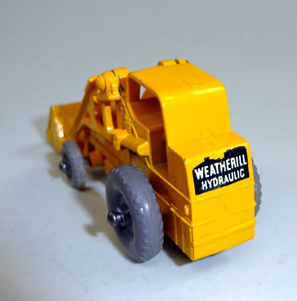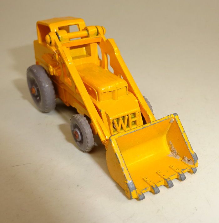 Willkommen bei den Ebay Angeboten von Harveys-Matchbox! Sie sammeln Matchbox Modelle? Dann klicken Sie links auf die gewünschte Shop Kategorie oder beginnen mit der Startseite. Mehr als tausend Modelle und Zubehör erwarten Sie! Alle jene Sammler welchen meinen Onlineshop kennen werden die Struktur der Artikelgruppen hier im Ebay Shop erkennen, ich versuche alle Angebote in möglichst aussagekräftigen Kategorien zusammen zu fassen. Da niemand alles von Matchbox sammelt sind die einzelnen Hauptsammelgebiete wie Regular Wheels, Lesney Superfast aus England oder Superfast aus Fernost Produktion getrennt und dann noch nach den Nebenlinien aufgeschlüsselt. Wenn Sie genau wissen nach welchen Modellen Sie suchen benutzen Sie bitte die Suchfunktion. Es sind nicht alle Modelle aus meinem Onlineshop hier bei Ebay gelistet, sollten Sie hier nicht fündig werden schauen Sie mal dort nach. Mehr Informationen finden Sie auf der mich Seite! Hier biete ich an Matchbox 1-75 Regular Wheel Serie 1953 - 1969 ohne Box No. 24B Hydraulic Excavator Gelb, graue Räder mit grobem Profil, runde Achsen, die Achse der