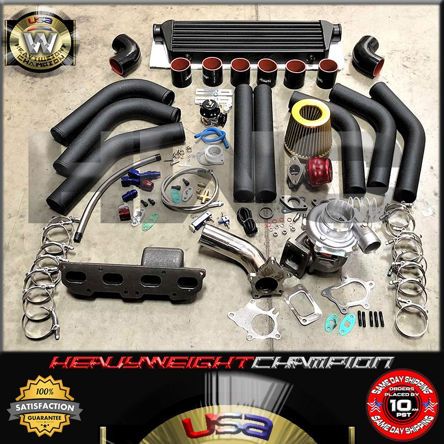 HWC has the best products with the best prices. We believe in Safety and Standards in both machining and manufacturing. Unlike our competitors who offer you low prices for inferior products, we build products that lift and level your vehicle without compromise. Cutting corners is awesome when driving your car but not when manufacturing, buy right, choose Supreme. COMPATIBLE: 1995-1999 Mitsubishi Eclipse 1995-1998 Eagle Talon 1995-1999 Plymouth Neon 1995-1998 Dodge Neon 1995-1999 Dodge Avenger fits vehicles running with 420A 2.0L DOCH 4 Cylinder Engine only T3/T4 TURBOCHARGER 100% Brand New T3/T4 Hybrid Turbocharger! High Quality Guaranteed! cast housing with durable steel. Capable of boosting horse power up To 350+ BHP, standard 4 bolt exhaust flange, Capable of 8 PSI or 15-25 PSI output at peak power. Cnc machined flanges. Internal wastegate setting: 8 PSI. High quality t04e with a forged turbine propeller wheel! 1. Turbo Specification: - Standard 5 bolt T3 Downpipe Flange. - 5 Bolt Standard Hot Side. - Standard T3/T4 Flange. - Oil Inlet - 1/8 NPT Oil Inlet. - Bearing Type - Journal Bearing. - Wet Floating Bearings. - Cooling Type: Oil Cooled. 2. Compressor Specs: - 3" Compressor Inlet. - 2.07" Inducer. - 2.36" Major. - 2" Compressor Outlet . - T04B/T4 Type Compressor Housing. - Compressor .50 A.R. - Compressor .57 Trim. - 8 Blade Type T4 Compressor Wheel. 3. Turbine Size: - T3 Type 4 Bolt Turbine flange.- 5 bolt Exhaust flange.- Turbine .63 A.R. - 2.48" Minor and 2.89" Major Propellar.- T3 Turbine Housing.- 2.274" Outlet.- INTERCOOLER: 1. 6061 Light Weight Billet Aluminum Construction. 2. Tube & Fin Light Weight Design. 3. Construction: Machine Cut and Stamped Hand Welded. 4. Working Pressure: 5~50PSI. 5. Pressure Drop:2~5psi@35psi;0.2~0.5psi@15psi. 6. Hot Air Temperature: 32°F~302°F (0°C~150°C) 7. Compress Air Flow Rate: < 350 Cubic Feet/Min Rated to 500 Max HP. 8. Overall Size - 27" x 7" x 2.5" 9. Core Size - 21" x 6.5" x 2.5" 10. In/Outlet - 2.5" OD / 2.25" ID PIPING: 1. Made of High quality T-6061 LIGHTWEIGHT Aluminum Piping. 2. Powder-Coated Surface Finish. 3. 2.5" Piping Diameter. 4. 2.0mm Pipe Thickness. 5. Increase 65% Air Flow comparing with other Standard Piping. SILICONE COUPLER: 1. Material:Made of high quality silicone material 2. Thickness of wall:5 mm, 4 ply reinforced 3. Working Pressure: 0.3 Mpa (43.5 PSI) to 0.9 Mpa (130.5 PSI) 4. Bursting Pressure: 2 Mpa 5. Working Temperature: -76°F (-60°C ) to +500°F (+260°C) 6. Size tolerance:+/-0.5 mm T-BOLT CLAMP: 1. Made of High quality 301 ss Stainless Steel Clamp 2. Stainless steel construction resists corrosion 3. Provide uniform sealing pressure for a positive 4. Polished finish increases engine bay aesthetics TURBO MANIFOLD: 1. Standard T3/ T4 (T03/ T04) Turbo Flange Configuration Outlet. 2. Included Wastegate Flange for 35mm/38mm external WG. 3. Increase Engine Intercooler Output and Efficiency. 4. Made of High Quality Cast Iron Material for Strength and Durability. TURBO DOWNPIPE: 1. Made by High Strength T-304 Stainless Steel Construction. 2. Increases High Flow Air Rate and Maximizes Performance. 3. TIG Welded CNC Machined Flange and Mandrel-Bent Piping. 4. Made of High Quality T304 Polished Stainless Steel Material. INTAKE FILTER: 1. Oil-free filter Micro cotton gauze type filter material washable with water or soap and reusable. 2. Improves Up to 95% Filtration Efficiency. 3. Designed to increase horsepower and acceleration. 4. Width: 6" Inlet: 3.0" Overall Tall: 3.5" Mesh Tall: 2.5" BLOW OFF VALVE: 1. Aggressive JDM racing discharge sound. 2. 8 Discharge ports that draw in surrounding air and release a unique discharge sound. 3. 40mm hard-anodized valve for increased airflow. 4. Dual spring system promoted response and allows for high boost pressures. 5. Support up to 30 PSI boost pressure. OIL LINE: 1. OIL DRAIN FEED LINE. 2. 10AN Fittings. 3. Inner Diameter: 0.50" 4. Length: 17.00" 5. CNC Machined Turbo Adapter Plate. 6. Weldable 10AN Oil Pan Fitting Included. 7. Inner Diameter: 0.25" 8. Length: 36.00" 9. 1/8 NPT Fittings Natural Polish Finish. 10. CNC Machined Turbo Adapter Plate. 11. Brass Fitting Block Fitting and Port Cover Included BOOST CONTROLLER: 1. Allows to adjust PSI ratings without changing the wastegate springs as well as replacing the wastegate springs. 2. High Performance Manual Boost Control From 0~30 psi Capacity. 3. CNC Machined Light Weight and Resistant to Rust. 4. Hose clamp and all necessary hardware for complete installation. 5. 1-30 PSI Adjustable. WASTEGATE: 1. High strength Alloy aluminum body with steel head. 2. Comes with 8 psi spring installed. 3. Protect the turbo system from over boosting. 4. Complete install kit included . ATTENTION: 1. For emissions related items please check with your local jurisdiction for emission specific requirements before purchasing. No installation instruction included unless otherwise specified. If item is questionable please consult your local professional/mechanic before making purchase. 2. Color may randomly selected depend on hand or inventory. 3. NO instructions included. modification might required for complete installation. 4. Professional TURBO INSTALLER is Highly recommend. Any damage during installation will not be refunded. 5. Your valid phone number is very necessary for the shipping, otherwise we can't guarantee that the package would safely arrive. 6. The piping that comes with this kit is universal, and will have to be modified to fit most applications 7. Don't hesitate to contact us if item stuck, unknown or fault installation !! Purchase now for only | ||||||||||