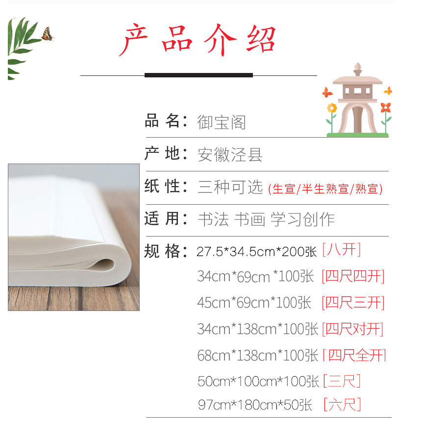 四尺对开 :34*138cm*100pcs(13*54''*100pcs