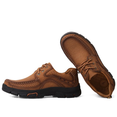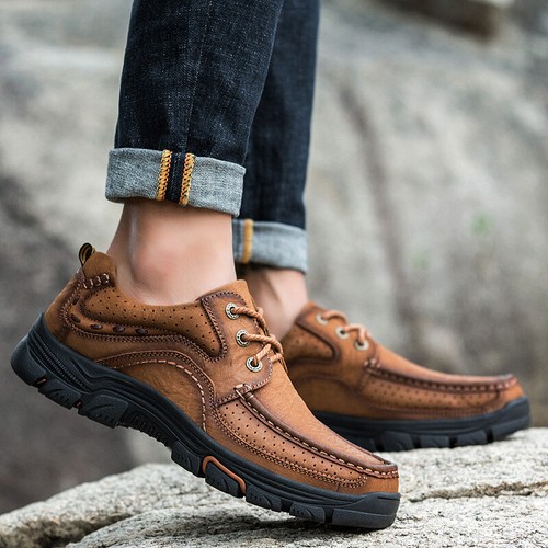 Mens Outdoor Hiking Climbing Non-slip Lace up Low Top New Leisure Leather Shoes