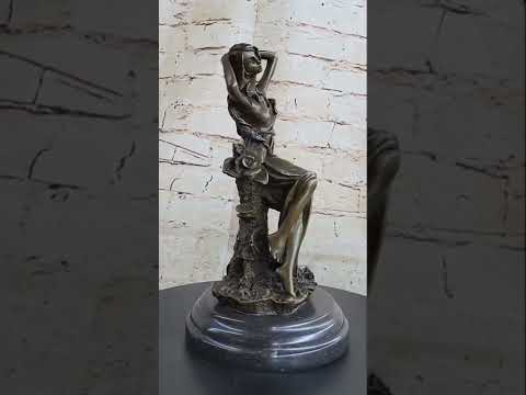 This enchanting sculpture is meticulously crafted using the time-honored "Lost Wax Method," a testament to the enduring artistry of this ancient technique. The brown patina finish enhances the details and ensures its lasting beauty. Crafted entirely by hand and cast in 100% bronze, this piece stands as a true labor of love. It rests on a sleek black marble base, its elegance accentuated by the contrast of materials. The artist Mavchi's signature adds the final touch, affirming the authenticity of this mesmerizing artwork.