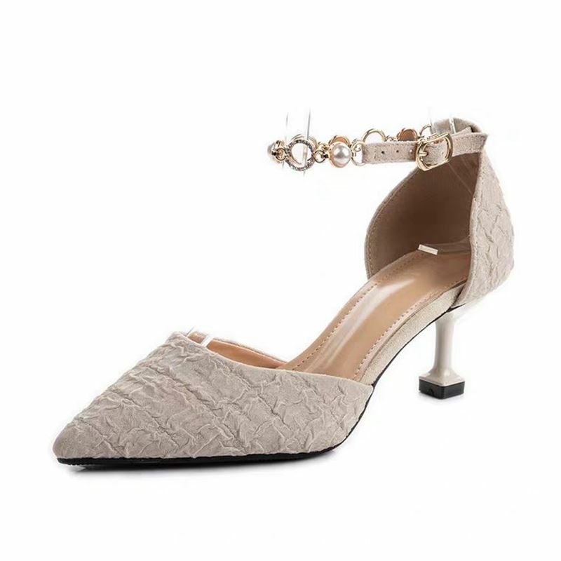 Women Pearl Low Stilettos Heel Pump Shoes Ankle Strap Pointed Toe Wedding NEW w