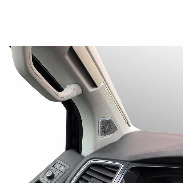 The first thing you will notice about the SPC-108T6 are the beautifully designed stainless steel tweeter grills in the A-pillars, that replace the original plastic VW grills. We use a cutting-edge chemical photo etching process for highest aesthetics and acoustics performance, to make them look stunning from every angle – yet acoustically optimized and virtually transparent to the sound waves passing through them.