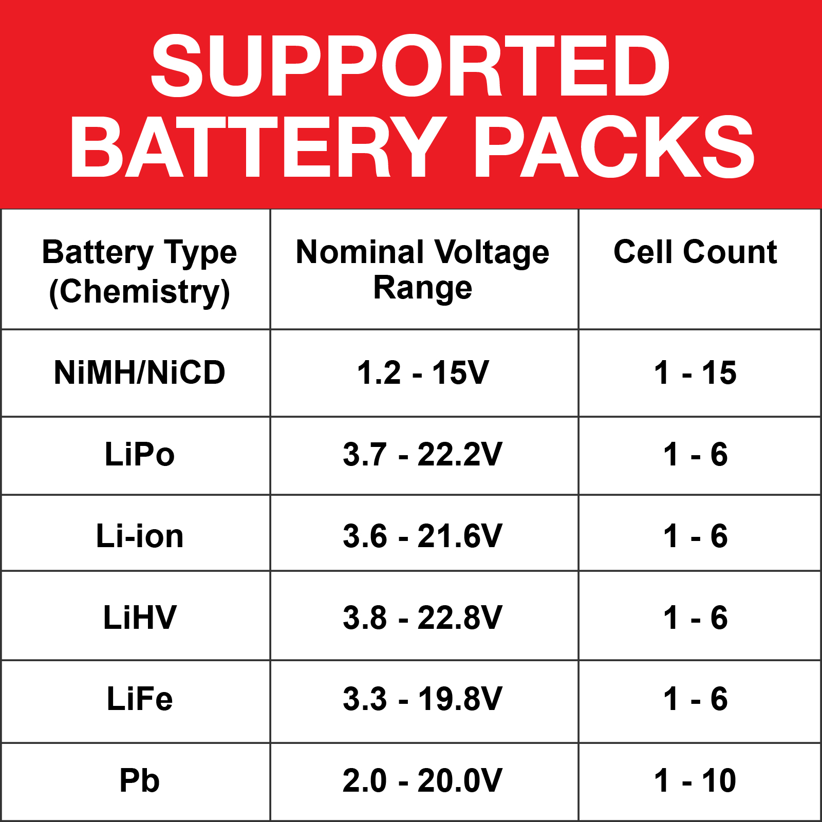 As an added bonus, you will not need to haul that separate power supply out to the track anymore. Menu navigation is easy using the five-button control interface and brightly backlit LCD screen. All the most common battery chemistries are supported: LiPo, LiHV LiFe, Li-Ion, NiMH, NiCD, and Pb (lead acid) with a complete assortment of charge leads included in the box with two extra long balance leads to make safe charging in a LiPo sack effortless. Get ready to upgrade to the newest addition to the Venom family of chargers, get your Venom Pro Duo 7.0A LiPo & NiMH charger today!