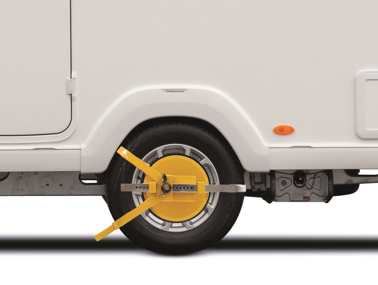 This full face wheel clamp helps to protect your vehicle against theft and it also acts as a visual theft deterrent. It has a unique press-and-lock mechanism that unlocks with the supplied two keys.