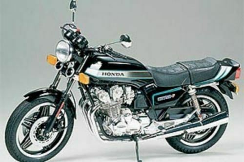 Tamiya 16020 Honda CB750F Bike Motorcycle Model Set 1:6 Scale1/6 Scale Bike Assembly Kit16020Honda CB750F KitThe Honda CB750F Motorcycle first appeared on the Japanese market in June 1979 and was shortly the best seller in the 750 motorcycle class. Just ten years prior to their CB750F, Honda opened the field of multi-cylinder, large-bore bikes with the now famous four cylinder CB750. Honda had extensively tested the multi-cylinder concept and won several Grand Prix motorcycle races, and the CB750 was based upon these experiences. The engines worked flawlessly and provided very smooth power with almost no vibration, and so shocked the industry, that soon many of the famous makers also produced four cylinder large cubic motorcycles. Honda, of course, held the number one position in sales for many years, but then Kawasaki released their "Z" series DOHC 750 bikes, and took over the number one position, relegating Honda to 2nd place.Honda, however, did not take this set back for long, and continued to improve their engines, and in 1979 released a CB 750K DOHC with four valves per cylinder, a powerful 68hp, and completely new body styling. It was not long before Honda was again number one! The CB750F, released in June 1979 was styled after the very popular European Honda CB900F, which had been copied from their racing RCB bike. This styling was new to stock motorcycles of the world. The low positioned handle bars and rear positioned foot rests, allow a "slouched" riding position and this style is what set the standard for the eighties.The CB750F is powered by a 4 cylinder DOHC 748cc engine with 4 valves per cylinder, and the 1981 version produces 70 brake horsepower. The bike has a double cradle frame of welded steel tubing, 37mm air front forks with equalizer and 30 way adjustable rear shocks with variable hydraulic dampening. It is equipped with a maintenance-free transistorized pointless inductive ignition system and braking is accomplished with a dual caliper double disc front brake and a large single disc at the rear. A newly designed racing type front fender with spoiler has proved to be very effective and popular among bike enthusiasts. The overall styling of that unveiled in 1979, with the smooth flowing lines from tank to tail light have been retained, and it is likely that this fine motorcycle will keep the Honda Company number one for years to come.