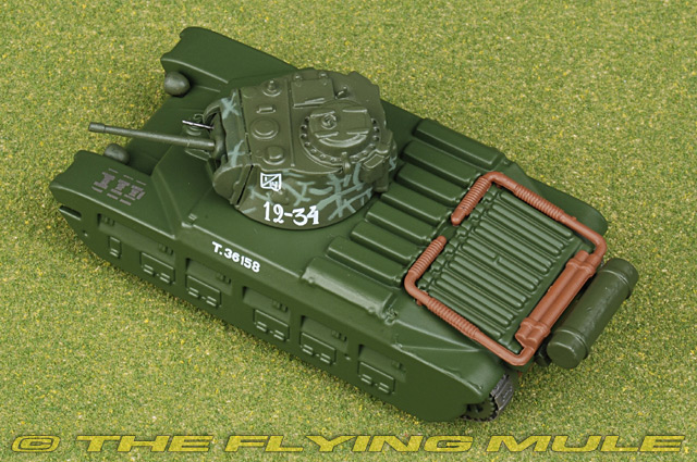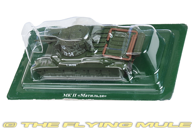 The Infantry Tank Mark II (sometimes referred to as Matilda II) was a British infantry tank of the Second World War. It was the only British tank to serve from the start of the war to its end, although it is particularly associated with the North Africa Campaign. With its heavy armour, the Matilda II was an excellent infantry support tank, but with somewhat limited speed and armament. When the earlier Infantry Tank Mark I, which was also known as "Matilda", was removed from service by 1940, the Infantry Tank Mk II became known simply as the "Matilda". Matilda II© Copyright 2003-2026 The Flying Mule, Inc. Eaglemoss 1:72 Russian ArmorThe Eaglemoss Collections "1:72 Russian Armor" range presents affordable, ready made diecast models of Soviet and Russian military vehicles in 1:72 scale. To help keep the price down, these items arrive in low-cost, discardable blister type packaging.Eaglemoss Collections "1:72 Russian Armor" diecast vehicles feature:
