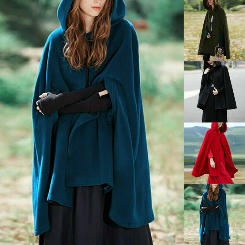 Women Hooded Cape Coat Loose Long Sleeve Poncho Jacket Outwear Tops Cloak