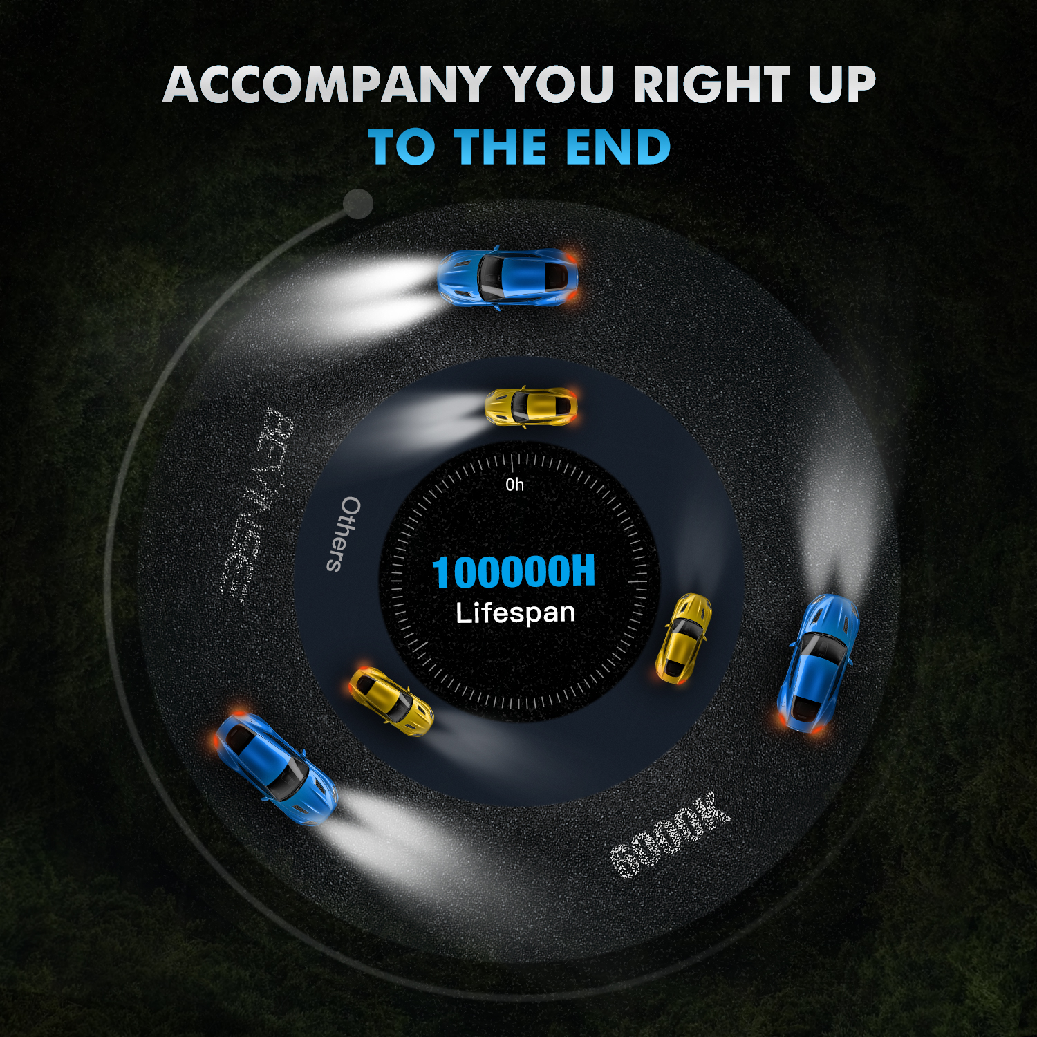 【Perles LED ultra-lumineuses】 120W / paire avec une luminosité jusqu'à 22000 lumens, perles LED CSP-3570 projetant des faisceaux ultra-lumineux. Beaucoup plus loin et plus lumineux pour assurer votre sécurité à chaque minute sur la route.