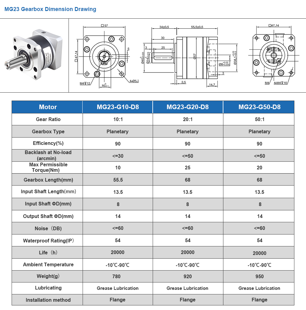 This high-precision planetary gearbox is belong to MG series gearbox. Diffent with the PLE series' steel gears, PLM series' gears are made of powder metallurgy. It's an excellent choice for applications that require good accuracy but low cost.