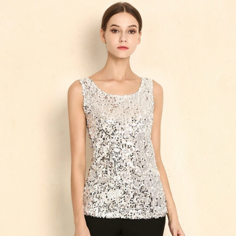 Women Full Shiny Sequin Vest Tank Tops Camisole Glitter Bling Sleeveless T Shirt