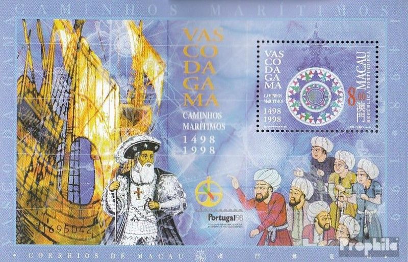 Briefmarken Macau Block54II (kompl.Ausg.) postfrisch 1998 Vasco da Gama prodotto: Briefmarken territorio: Macau occasione dell'uscita: 1998 Vasco da Gama titolo: Block54II (kompl.Ausg.) numeri di catalogo: 54 annata: 1998 : postfrisch