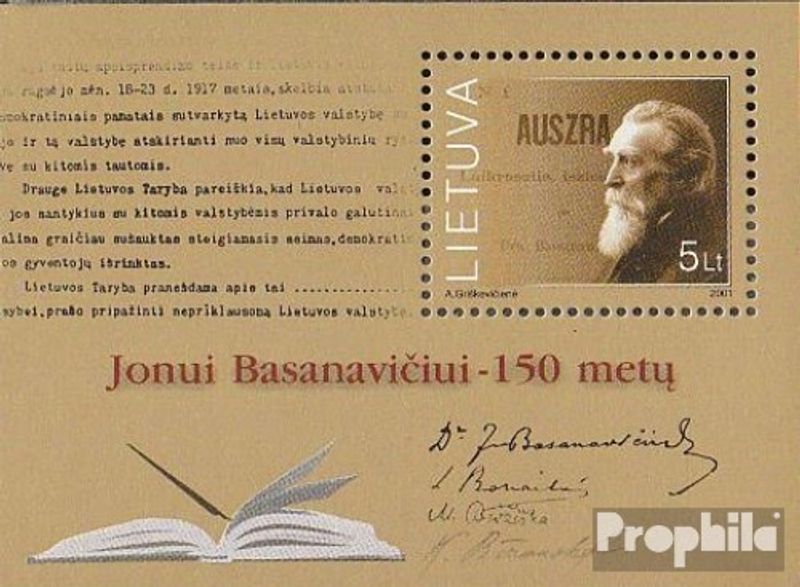 Francobolli Lituania Block 24 (completa Edizione) MNH 2001 Basanavicius prodotto: Francobolli territorio: Lituania occasione dell'uscita: 2001 Basanavicius titolo: Block 24 (completa Edizione) numeri di catalogo: 24 annata: 2001 : MNH