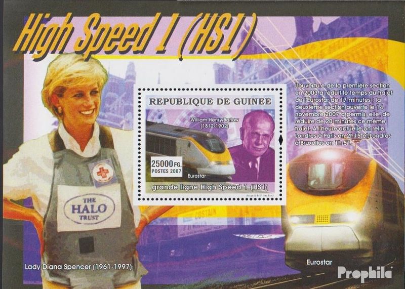 Francobolli Guinea Block1382 MNH 2007 Eurostar-Corso prodotto: Francobolli territorio: Guinea occasione dell'uscita: 2007 Eurostar-Corso titolo: Block1382 numeri di catalogo: 1382 annata: 2007 : MNH
