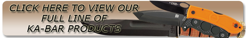 HOW KA-BAR GOT ITS NAME... There have been many versions of how the KA-BAR name came to be, but all evidence points to a letter received from a fur trapper. He wrote, in very rough English, that his gun had jammed and that he had therefore relied on his knife to kill a wounded bear that was attacking him. In thanking the company for their quality product the trapper described using his knife to kill the bear. All that was legible of his scrawled writing was "k a bar". The company was so honored by this testimonial that they adopted this phrase and used it as their trademark, KA-BAR.