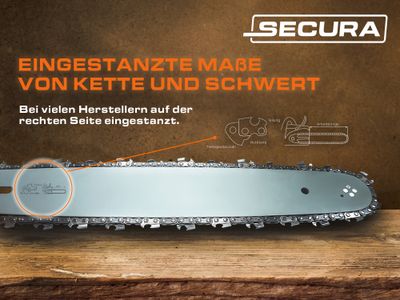 Diese Sägeketten verfügen über 64 Treibglieder. - Sämtliche Maße finden Sie zudem auf dem Schwert auf der rechten Seite eingestanzt. Siehe Abbildung 5.