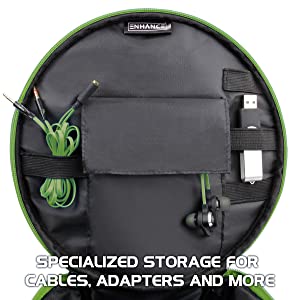 Organize your earbuds, flash drives, USB cables, AUX cables and more in the integrated storage compartments. A series of elastic straps holds small accessories in place while a large central pocket can be used for extra organization space.