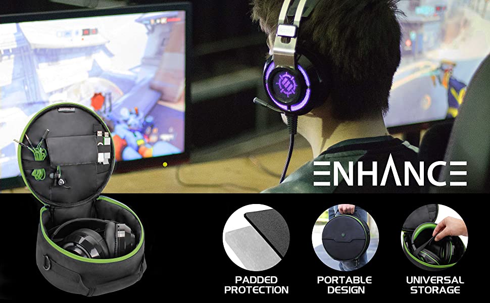 Protection and storage unlike any other, ENHANCE offers a practical and stylish headphones travel case that spares no expense. We've designed the headset travel case with 3 principle aspects in mind: Protection, Practicality, and Portability!