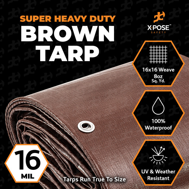 No matter what weather conditions you live with, Xpose Safety’s Super Heavy Duty Poly Tarp can protect your goods. Waterproof, nd UV resistant, it keeps your precious possessions protected from water and the sun. This rip resistant, 16 mil thick tarpaulin with reinforced edges lasts longer than cheaper competitors.