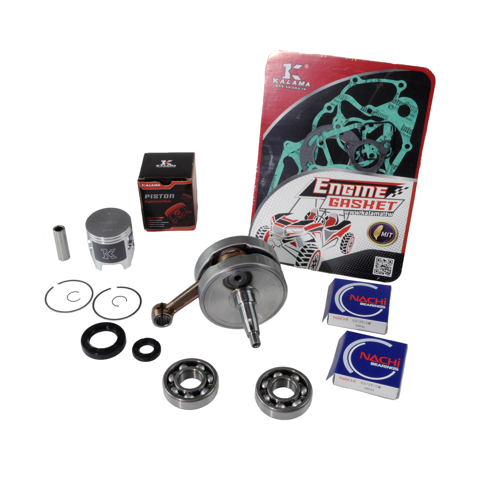 Item fits: Crankshaft x 1 STD Piston and Ring Kit x 1 Complete Top & Bottom End Engine Gasket x 1 ★ A390 aluminum alloy ★ Hard Anodize on crown and side for ignition and combustion resistance ★ MoS2 Skirt coating reduce friction and improve wear ★ Cast piston has super-high silicone content for additional strength ★ Nachi Main Bearing Made In Japan ★ Best Taiwan Performance Oil Seal