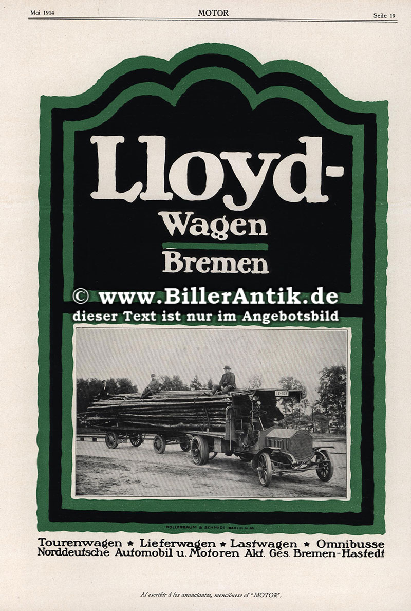 Tourenwagen, Lieferwagen, Lastwagen, Omnibusse, Lloyd Wagen, Nordd. Automobil- u. Motoren Akt.Ges. Bremen-Hastedt