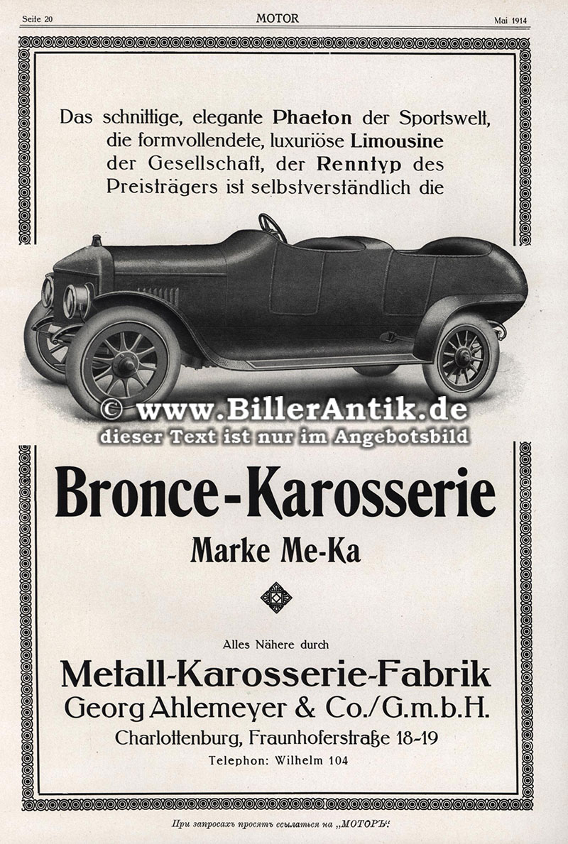 Bronce-Karosserie Marke Me-Ka, Metall-Karosserie-Fabrik Ahlemeyer u. Miethke G.m.b.H. Charlottenburg