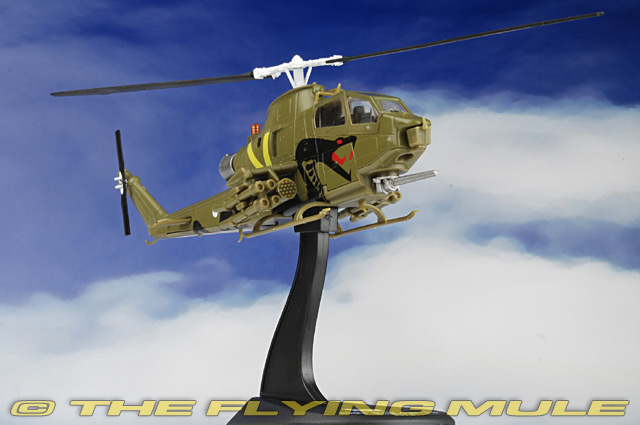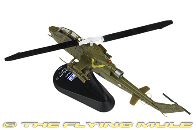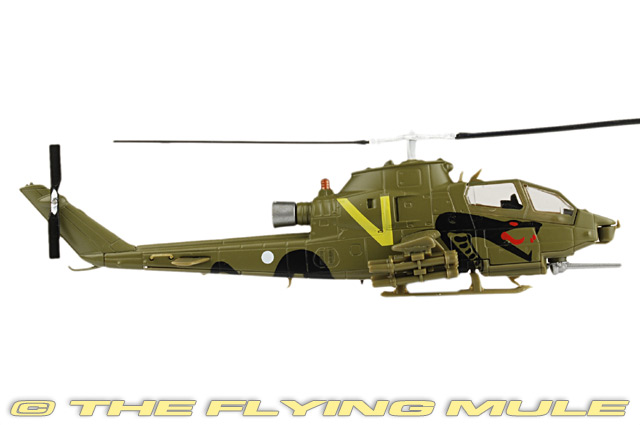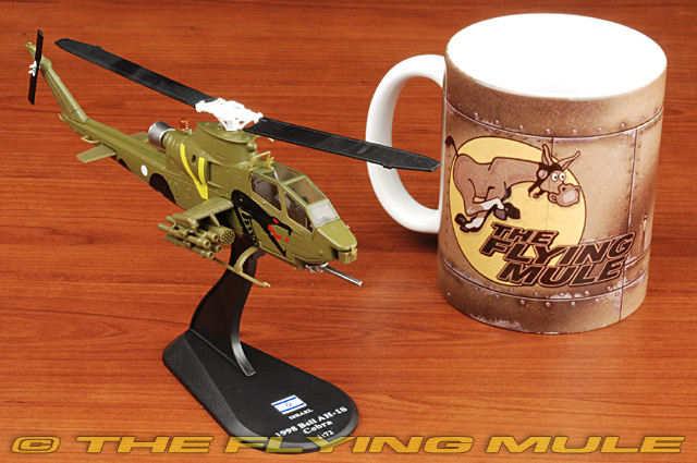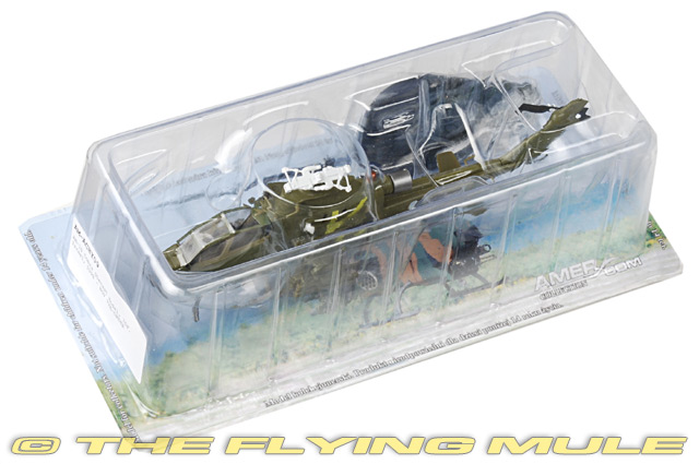 The Bell AH-1 Cobra is a two-blade, single engine attack helicopter manufactured by Bell Helicopter. It was developed using the engine, transmission and rotor system of the Bell's UH-1 Iroquois. The AH-1 is also referred to as the HueyCobra or Snake. The AH-1 was the backbone of the United States Army's attack helicopter fleet, but has been replaced by the AH-64 Apache in Army service. Upgraded versions continue to fly with the militaries of several other nations. The AH-1 twin engine versions remain in service with United States Marine Corps (USMC) as the service's primary attack helicopter. Bell AH-1S CobraDesigned to meet an urgent US Army requirement for a helicopter gunship, the Bell AH-1 Cobra-sometimes called The Snake-was first flown on September 7th, 1965. Troop-carrying Hueys depended on the Cobra for fire support; it was fast and very maneuverable, and its narrow 38-inch airframe made for a difficult target. Its main armament was its three-barrel 20mm Gatling gun mounted in a chin turret, but it was also capable of using a variety of other weapons including rocket pods, cannon pods, minigun pods and missiles. Replaced by Apaches in the 1990s, the Cobra now serves the US Forest Service as a firefighter.© Copyright 2003-2026 The Flying Mule, Inc. Amercom Helicopters of the WorldThe Amercom "Helicopters of the World" range presents affordable, ready made diecast models of military and civilian helicopters in 1:72 scale. To help keep the price down, these items arrive in low-cost, discardable blister type packaging.Amercom "Helicopters of the World" diecast helicopters feature: