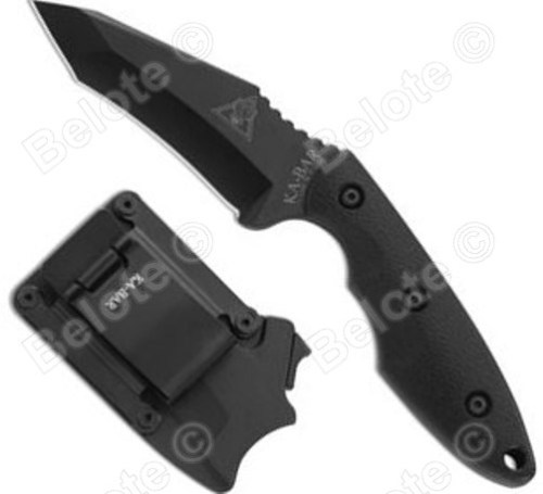 Weight: 6 oz. / Type: Fixed Blade / Blade Length: 3.56" / Overall Length: 7.25" / Blade Thickness: 0.188" / Blade Shape: Recurve Tanto / Steel: 1095 Cro-Van / Grind: Hollow / Knife Made in USA, Sheath Made in Taiwan