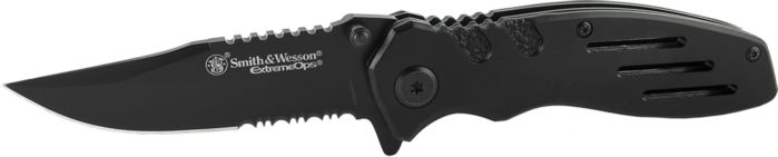 Extreme Ops Linerlock Black Clip Point Folder Plain Edge Model #: SWA24S
