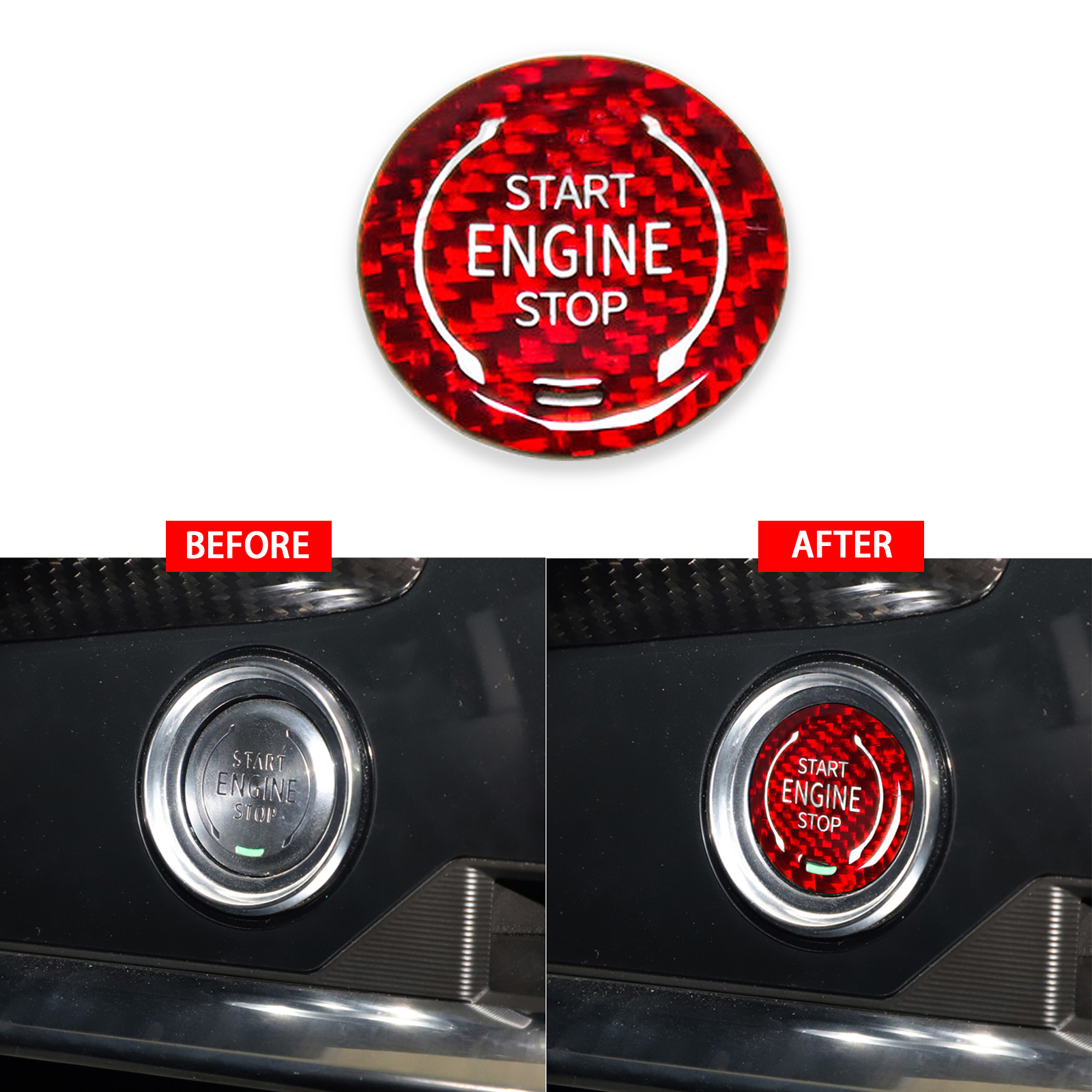 1pcs/set Carbon Fiber Start Stop Switch Ring Decor Trim Cover