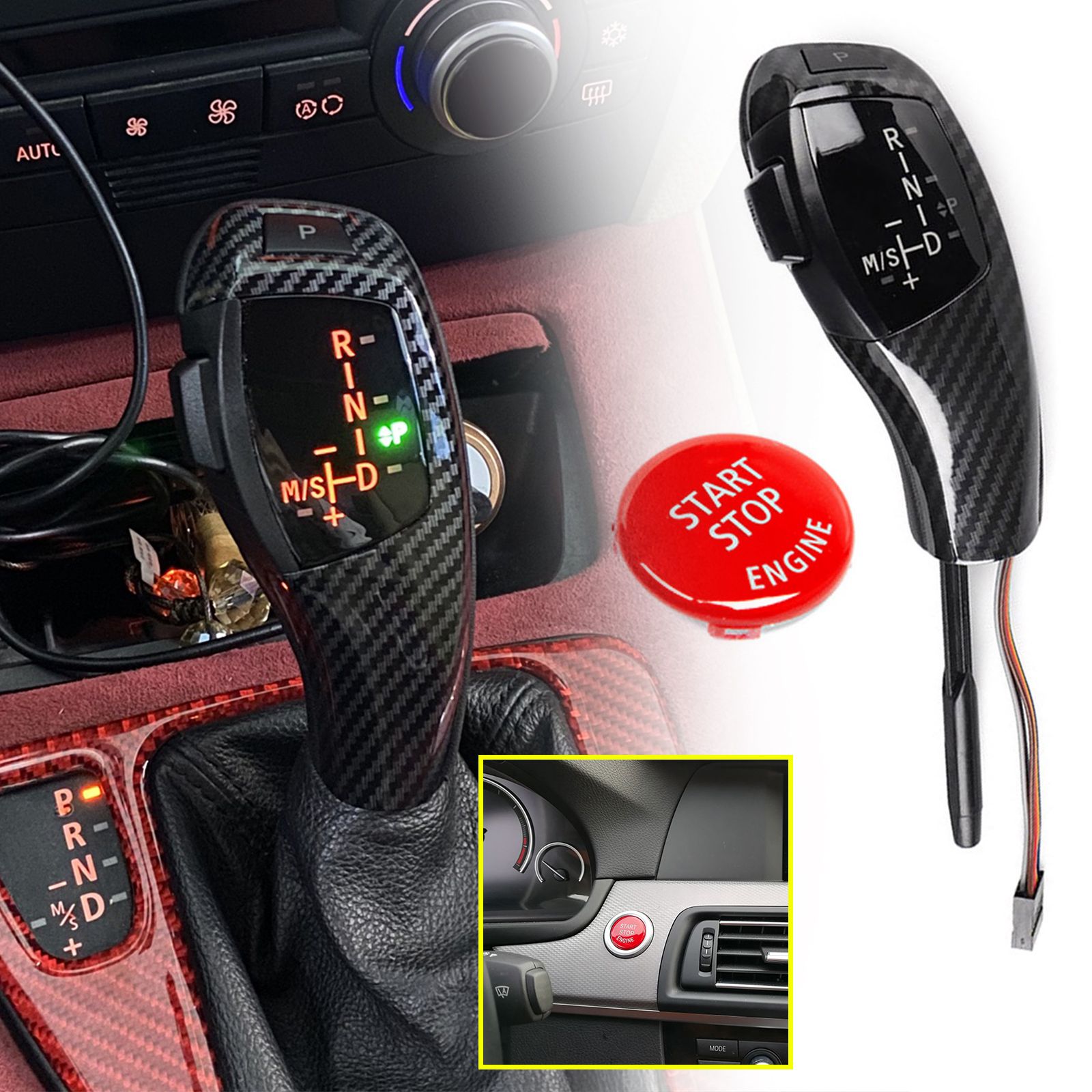 The LED lights up in yellow in parking, reverse, neutral, car and M/S modes, and all text areas are lit in orangeThis electronic gear shift knob has an LED gear indicator that allows you to see the gear indication even at night, providing security for your night driving.