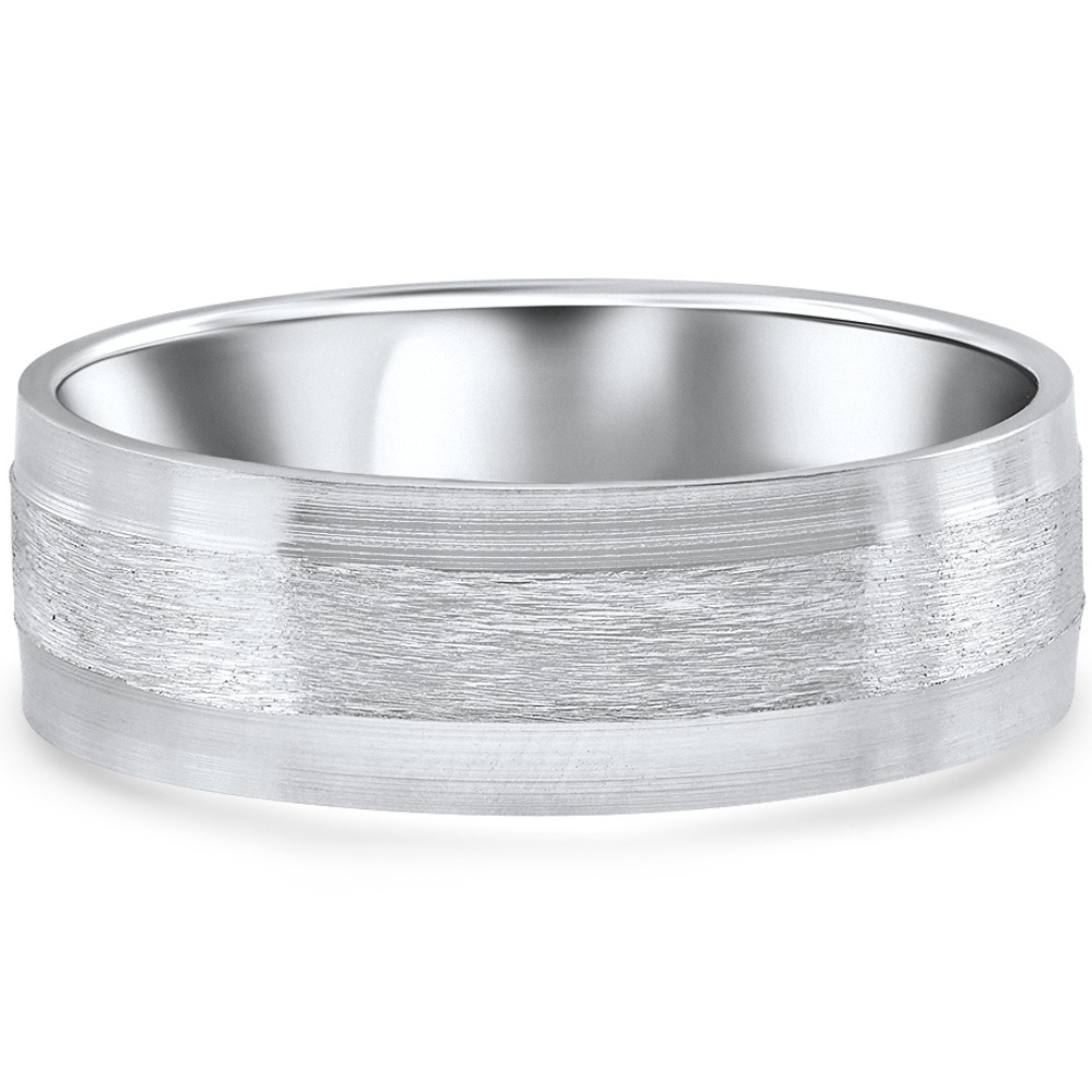 7mm Brushed Flat Platinum Mens Comfort Fit Wedding Band
