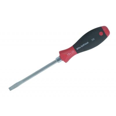 Introducing the SoftFinish® Cushion Grip Heavy-Duty Slotted Screwdriver, measuring 12.0 x 200mm. This robust tool features a heavy-duty hex blade crafted from Wiha's exclusive CRM-72 tool steel.