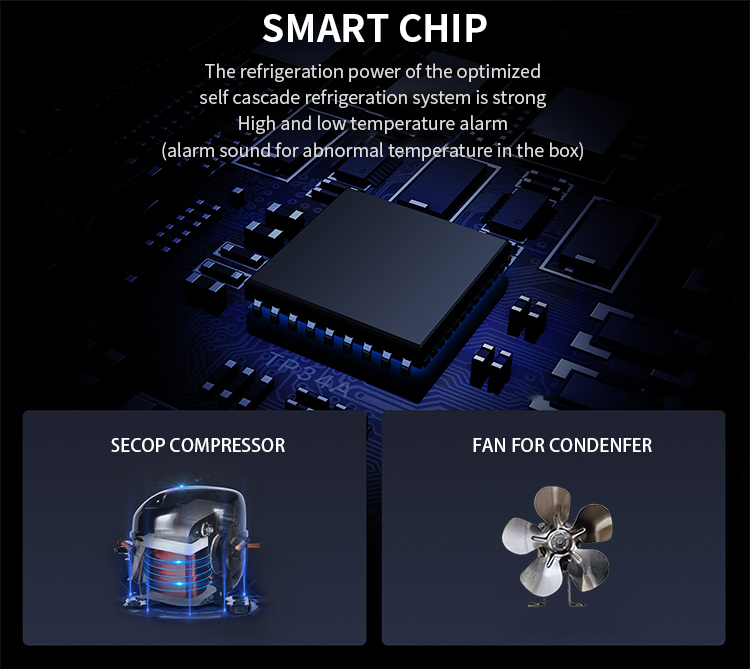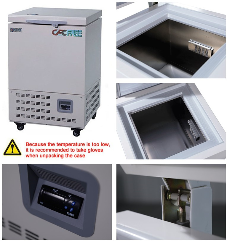 Ultra Low Temperature Refrigeration is suitable for research institution, ultra low temperature experiment for special material,electronic industry, war industry, university laboratory, biological engineering, pelagic fishery and so on. It can be used to store virus, germ, RBC, WBC, skin, skeleton, bacteria, semen,biological product, ocean product and low temperature test for electronic device,etc.The SECOP compressor control with 1 separate interior doors that can be opened independently to minimize frost accumulation in the room. The unique door seal design minimizes the temperature loss when the door is opened. The stainless steel handle ensures that the door opens