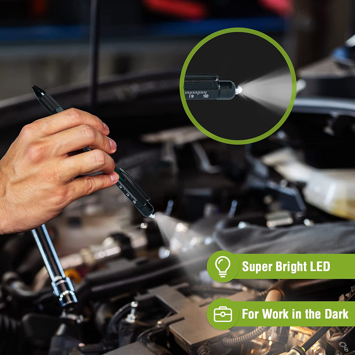 【EXCELLENT FOR YOU AND HIM】—This Multi function 10-in-1 tool pen lets you enjoy the best tech tool anywhere and anytime. It makes a great surprise for your dads, boyfriend, grandpa, brother, engineer, and woodworkers who love DIY home improvement. Imagine how convenient it is if you have a pen with lights to provide you with lighting during work. Put a multitool pen at the office, at home, or in the car. Because you never know when you need to fix a small item or leave a post-it note.