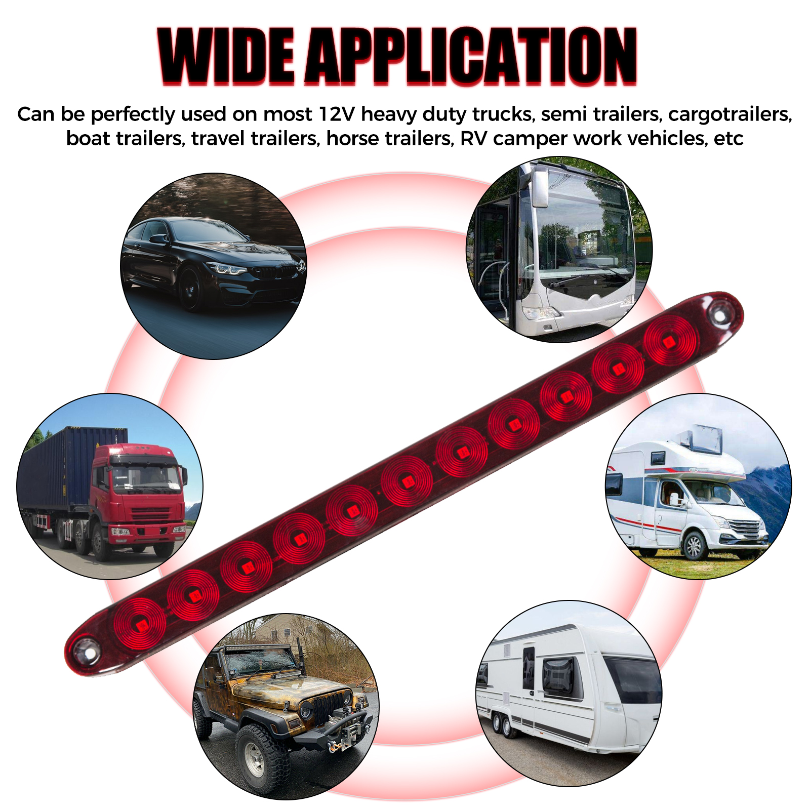 Functions as clearance, side marker or identification light, stop, turn, tail and brake light.