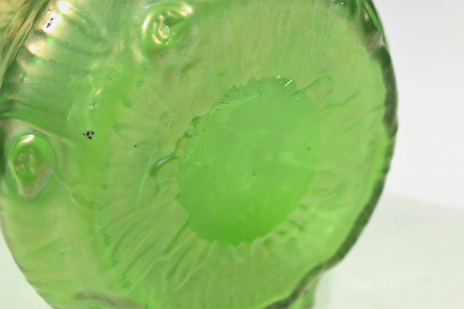Beautiful Art Nouveau vase made of green glass and in the shape of a calyx.