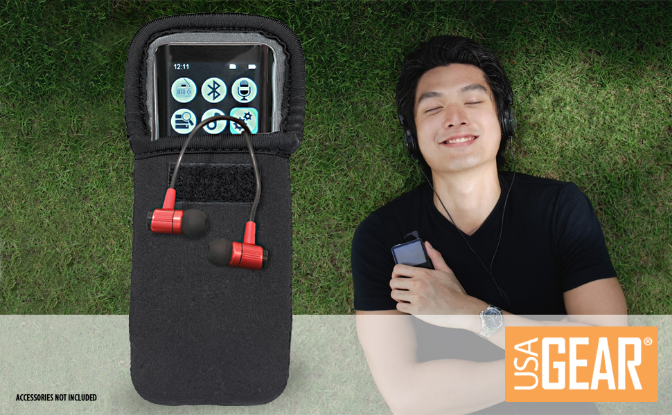 Store and organize your MP3 Player with USA GEAR's MP3 Player Travel Case. The practical design and neoprene construction protects your device. Store your MP3 Player and an accessory such as headphones in the pouch. Keep your MP3 Player safely stored in the holster while using your earbuds during a workout, hike, or just taking a stroll around the town.