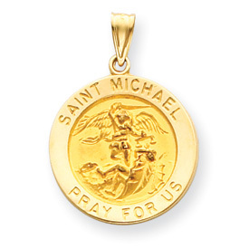 3D 3/4" Saint Michael PRAY FOR US Medal Charm Pendant Solid Real 14K Yellow Gold