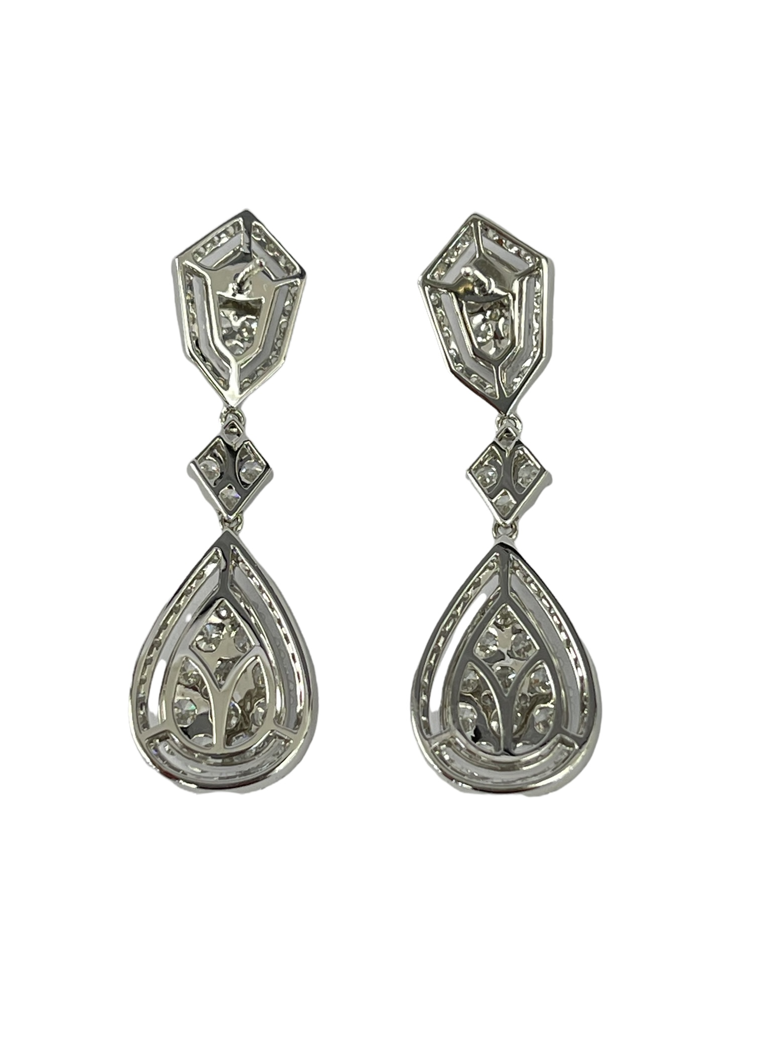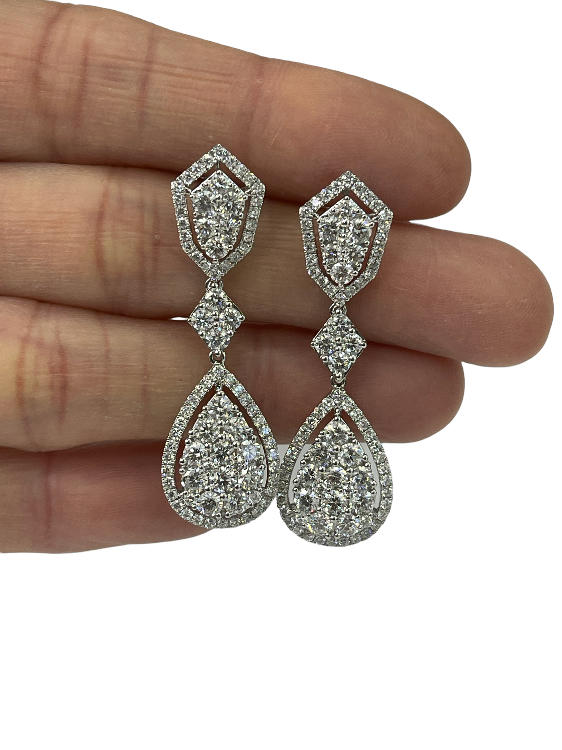 Round Brilliants Cluster Diamond Dangling Earrings White Gold 18kt