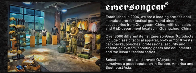 Over 8000 different items. Emersongear products included classic tactical apparel. Body armor&vest, backpacks, pouches, professional security and defending system, shooting gears and equipments, and the leisure tactical series.