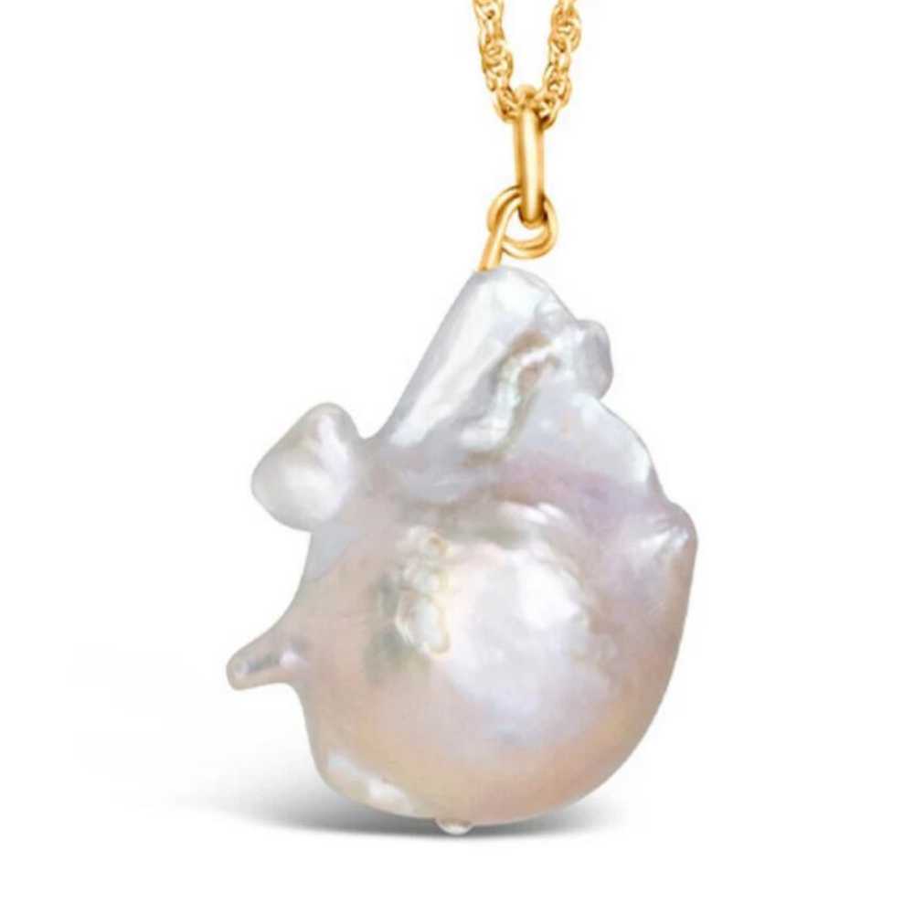 Natural 12-16 mm White Baroque Pearl Pendant 18K Gemstone Crystal Dragon