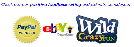 Immediate payment is required for your eBay purchases. Using PayPal, you can pay with all major credit cards, bank accounts, or PayPal balance. Our business name will appear on your credit card statements as: WILDCRZYFUN.